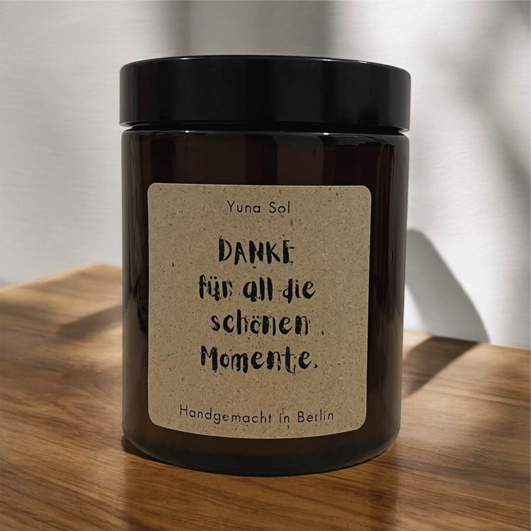 Unsere Kerzen im Glas zaubern nicht nur warmes, sanftes Licht, sondern tragen auch liebevolle Botschaften. Der Spruch Danke für die schönen Momente ist eine schöne Geste, Dankbarkeit auszudrücken und an gemeinsame Erlebnisse zu erinnern. Perfekt für gemütliche Stunden und als besondere Geschenkidee, die Freude und Wertschätzung der gemeinsamen Zeit vermittelt.