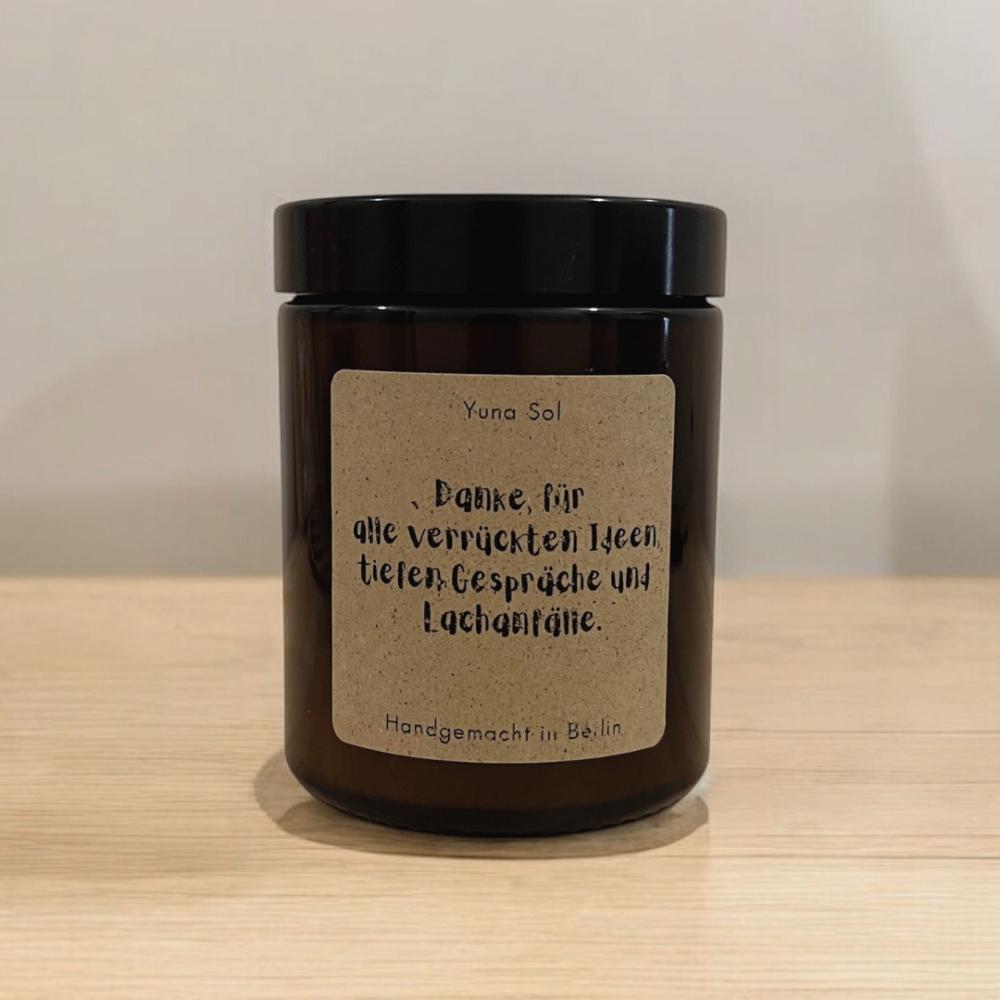 Mit dem Spruch Danke, für all die verrückten Ideen, tiefen Gespräche und Lachanfälle, ob für die beste Freundin, die Schwester oder einfach für jemanden, der dir am Herzen liegt – ist diese Kerze ist ein wunderbares Zeichen der Wertschätzung und erinnert an all die gemeinsamen Momente und Erlebnisse.